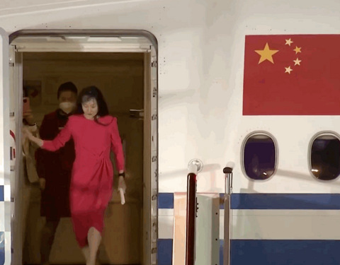 孟晚舟下机穿搭,红裙1.8w,手捧花1520