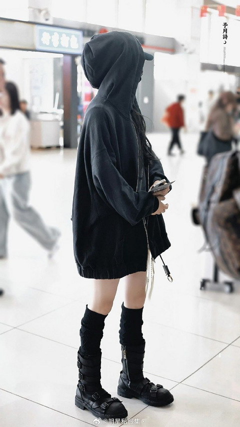 杨超越最新私服,又一套比较酷有点暗黑的穿搭