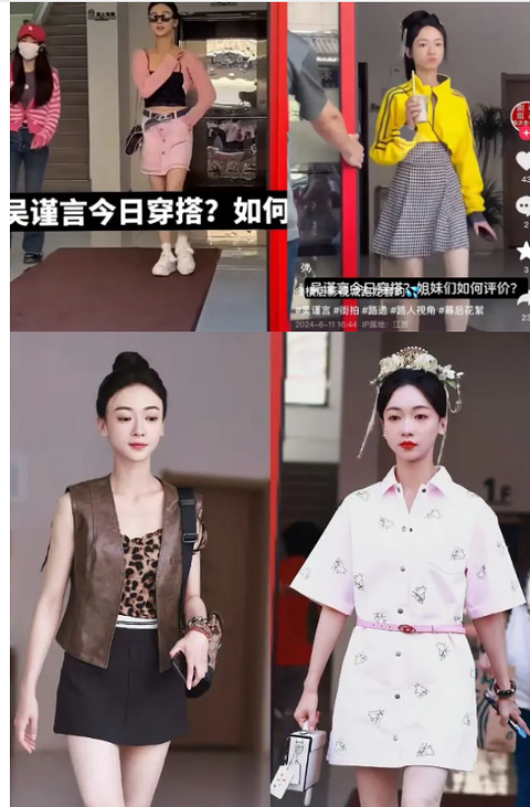 之前李梦在采访里夸吴谨言是“潮妹儿”,被网友质疑是在阴阳怪气内涵同事,毕竟吴谨言日常穿搭不说好难看,但也有点难看: