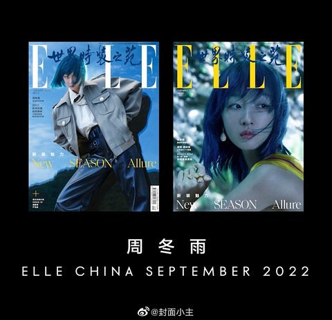 周冬雨艾拉金九封面,正式封面的预览,大胆尝试了蓝发造型,目前公布的三刊VOGUE芭莎 ELLE来说,艾拉暂时赢了