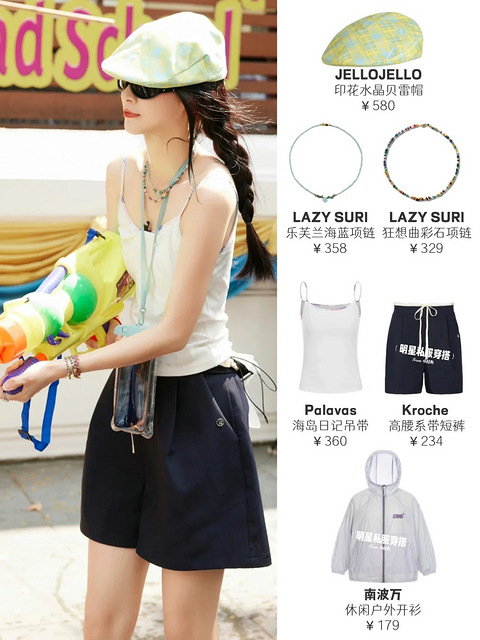 赵昭仪泰国穿搭,吊带短裤也很有氛围感,搭配亮眼配饰,这身简约清凉穿搭也超美啊