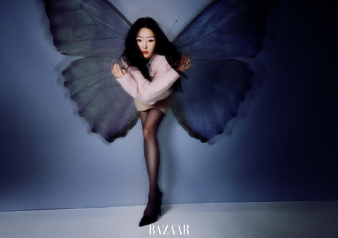宋妍霏为某杂志拍摄大片,时而穿渔网袜大秀美腿,时而穿抹胸上衣蛮腰吸睛,风格百变。