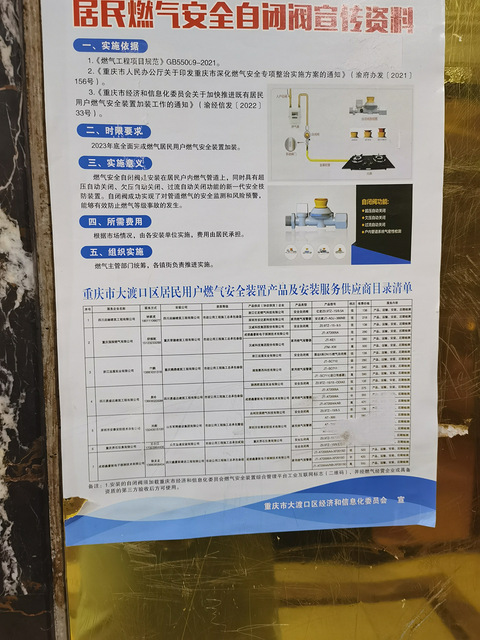 同是主城区,南岸 渝中 江北渝北。。。。等区安装燃气自闭阀都是免费,大渡口居然还要收费。都是主城区,大渡口为什么落后就从这点小事就看得出。这是执政能力问题,还是执政态度问题。