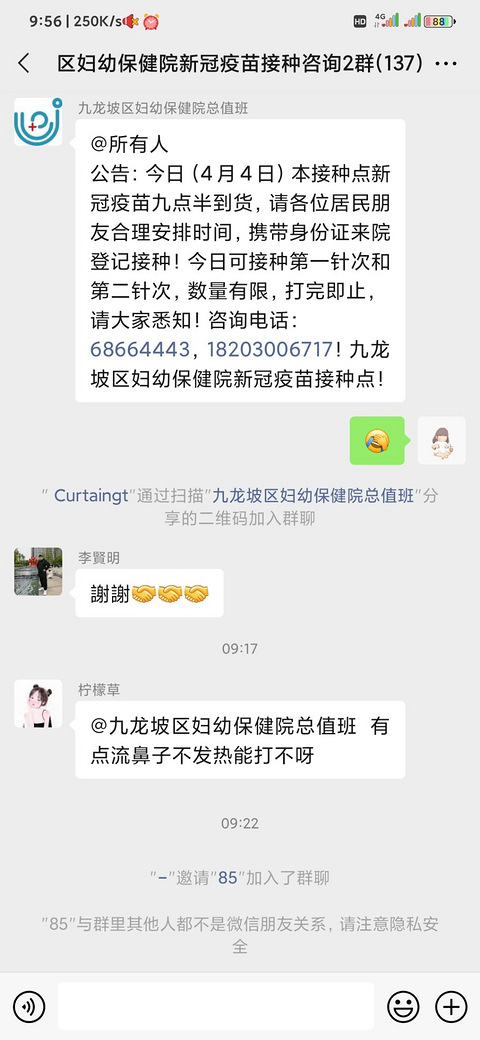 啊哈哈哈,我终于来打了新冠疫苗,加上排队不到半个小时在小区门口加了妇幼保健站的微信,然后进群,群里面的工作人员会通知好久有疫苗,然后今天4月4日我就来了 开始排队老,9点35开始排队的在门口登记然后拿起身份证进去录入指纹脸卡,第一次打针要在前台录入身份信息 有4个打针的诊室 这是我后面的一个阿姨,我只能说我紧张得流汗水,还厚起脸皮去抓别个的手,我说我怕,医生安慰我,喊我不紧张,越紧张反应越大,还说