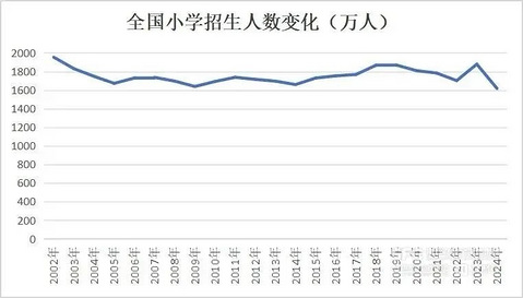 教育部最新发布的数据显示,我国基础教育学龄人口正在发生深刻的变化。 教育部6月发表《2024年全国教育事业发展统计公报》(下称《公报》),披露各学段学生、学校数据。我国幼儿园在园幼儿人数两年合计减少超过一千万人。 小学在学规模已于2023年达峰,招生人数或亦达峰。《公报》显示,2024年,全国小学招生1616.63万人,比上年减少261.25万人。 据21世纪经济报道,由于毕业生人数大于招生人数,