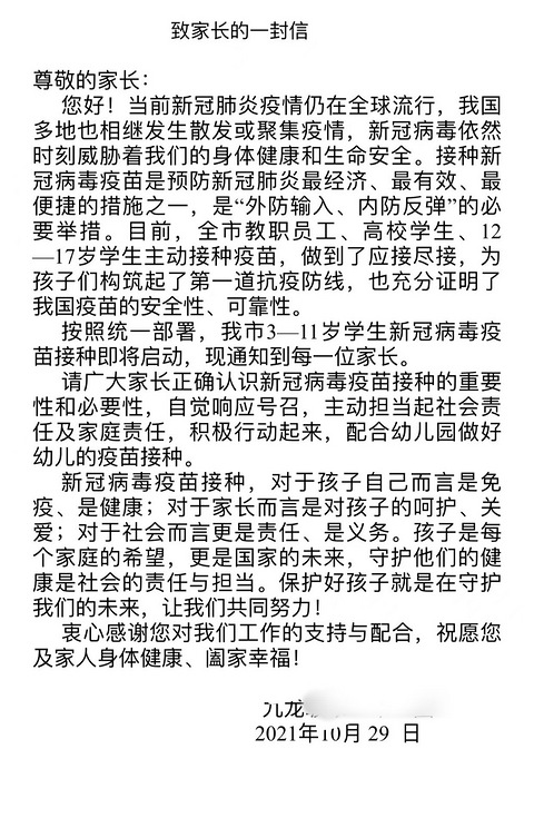 幼儿园通知了,我市3-11岁学生新冠疫苗接种即将启动!
