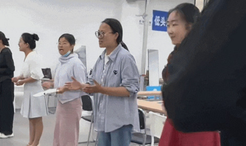 没想到有一天北影、上戏的表演系也能被行外人“碾压”。最近,一段大学生的“沉浸式无实物表演”的视频在网上刷屏了。只见一群二十多岁的人站成几排,同时对着空气手舞足蹈、声情并茂。 山东菏泽幼师培训现场 @小猪在菏泽个个都“夹”出了娃娃音,搭配着句句上扬的语调和活泼灵动的表情。 情到深处时还来一个弯腰下蹲绕圈圈。