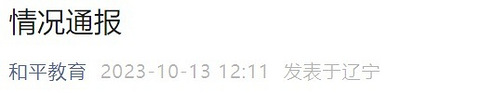10月13日,沈阳市和平区教育局微信公众号“和平教育”发布通报,全文如下:10月10日,根据家长举报内容,和平区教育局联合公安部门对马路湾幼儿园有关问题进行实地核查。经核查,涉事教师不当行为属实。和平区教育局责成该园负责人及涉事教师向家长道歉,同时,责令幼儿园对涉事教师予以辞退处理,对幼儿园作降级降星处理,并约谈幼儿园负责人,要求其马上进行园内工作全面整顿。和平区教育局将在全区幼儿园开展专项排查,