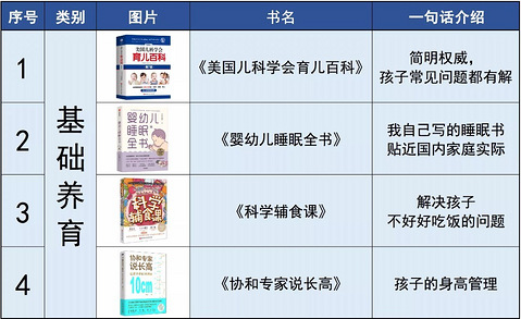 当妈之后,最缺的就是时间,市面上的育儿书层出不穷,买到滥竽充数的就郁闷了,又占地方,又浪费时间,从实用的角度来说,还是经典的好使。 今天这个书单有点特殊,为了方便大家阅读,我做成表格形式了。主要涉及这几个方面:一、基础养育二、早教三、儿童心理四、日常养育五、沟通六、品格性格培养七、学习认知八、养育男孩九、家庭关系 来源:小土大橙子