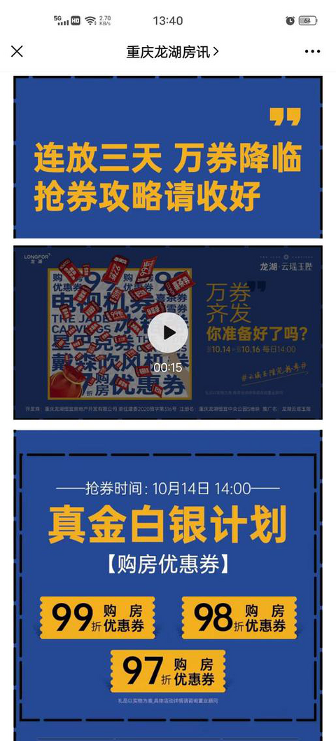地产商也开始发券了,龙湖这波操作下了血本啊