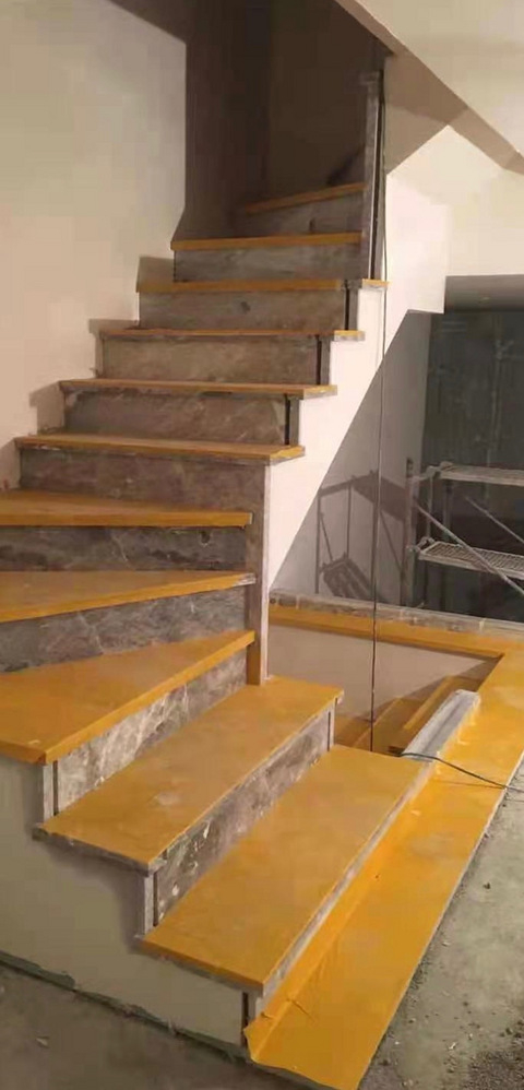 玻璃扶手楼梯终于完成的差不多了,石材部分终于搞定了,开心
