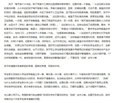 重庆一家长投诉学生需自带餐盒上学,影响孩子健康成长