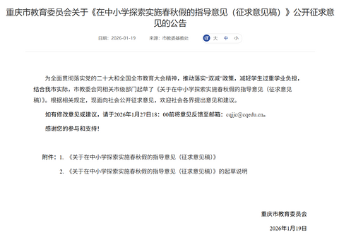事关重庆中小学春秋假!重庆市教育委员会公开征求意见