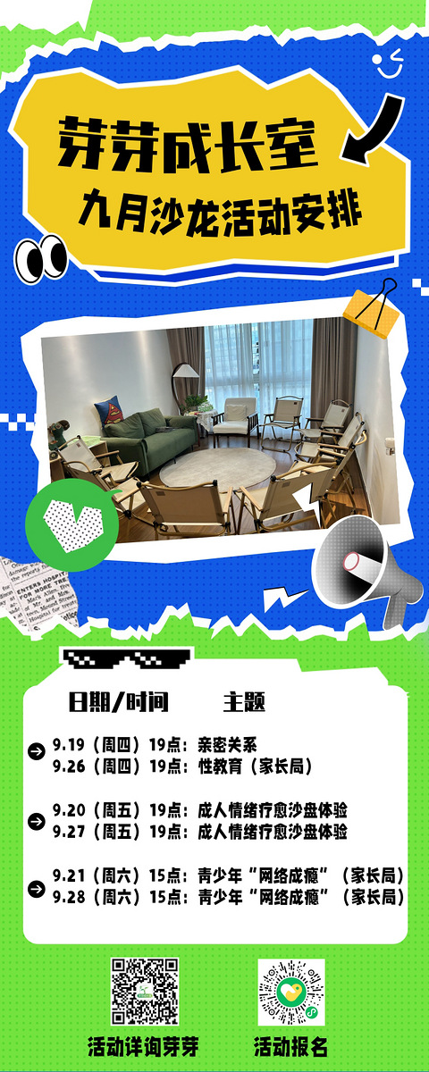 @朋友们,芽芽成长室九月沙龙活动安排来咯