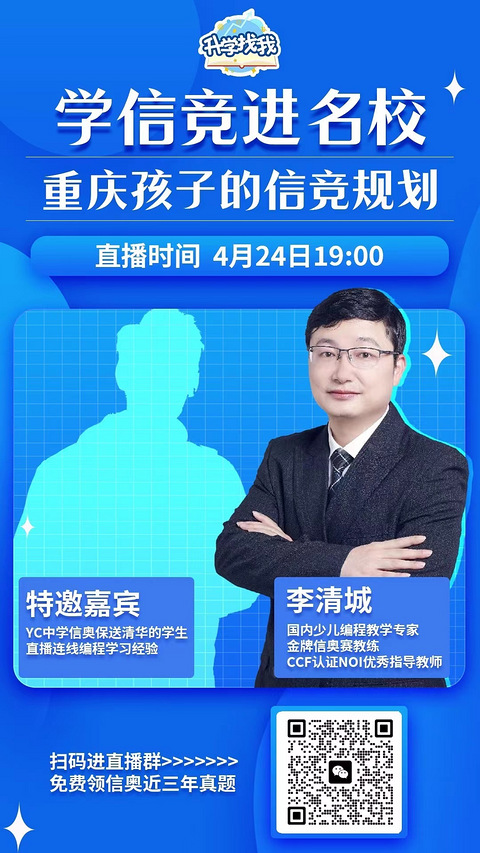 4月24日19点, 清华学霸空降直播间,分享小学编程学习规划