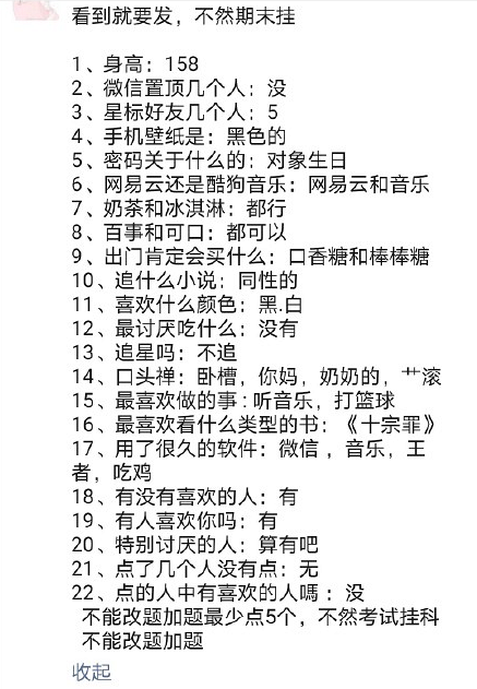 “我正在参加5月学校龙门阵,你也一起来吧https://go.cqmmgo.com/forum-462534-thread-178491620262915580-1-1.html” 原来现在也还在流行这种,不转不得行,要挂科,有点可爱 这个朋友圈信息量还挺大的,你们来找找亮点