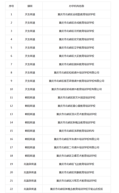 北碚区教委发布的中小学非学历教育培训机构合格名单不知道有没得家长需要啊