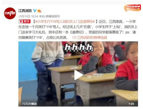 小学生连续一个月打“119”骂人,消防员找上门送道德经