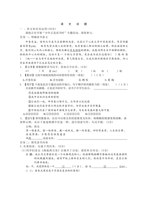 试卷总体评价结构合理性 题型全面,分值分布合理,符合中考命题趋势内容覆盖面 涵盖基础知识、古诗文、现代文阅读与写作,注重名著与时代热点能力导向 强调理解、分析、综合、表达与创新思维情境设计 任务驱动型强,贴近学生生活与社会现实难度梯度 由易到难,层次分明,适合九年级学生-----------------------------------------后续学习建议:夯实基础:加强字词积累、古诗文背诵