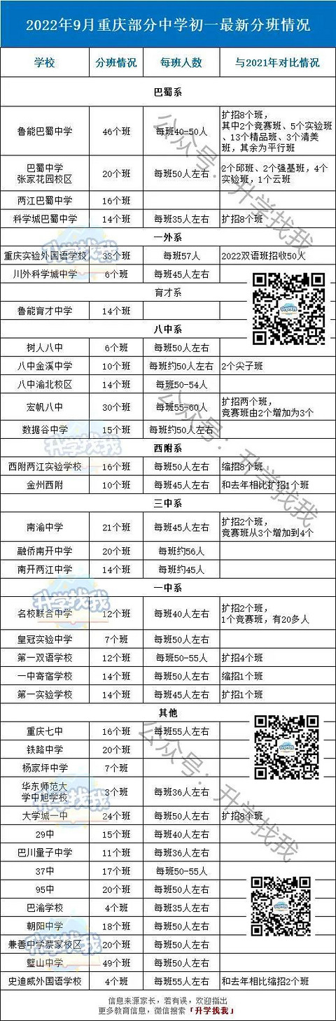 最多49个班!2022年重庆36所中学新初一分班情况曝光!