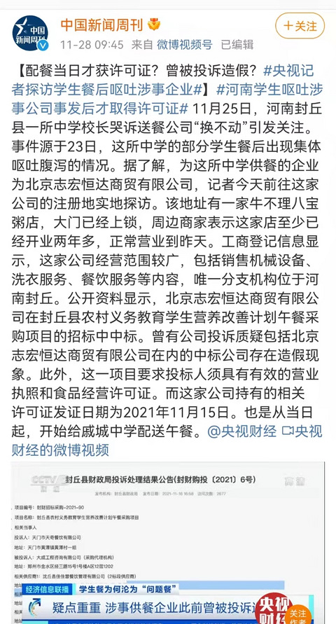 河南“学生呕吐腹泻”事件后续,公司事发当日才取得许可证?