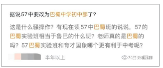 民转公后,四大金刚要重启初中部的消息传得沸沸扬扬的。 其中,传得最火热的便是巴蜀中学初中部回归渝中区的传闻。 先是,有人传57中改为巴蜀中学初中部。 还有网友传巴蜀中学将在42中借地办学。学校大楼一半归巴蜀学校,一半归42中。