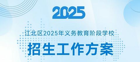 招生工作方案江北区2025年义务教育阶段学校——摘自《江北区2025年普通中小学招生工作方案》(江北教〔2025〕7号)为深入贯彻全国教育大会、全市教育大会精神,按照《教育部办公厅关于开展义务教育阳光招生专项行动(2025)的通知》(教基厅函〔2025〕5号)和《重庆市教育委员会关于做好2025年义务教育招生入学工作的通知》(渝教基函〔2025〕25号)等相关文件要求,全面加强和优化义务教育招生入