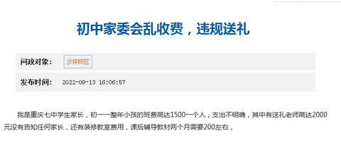 七中家委会被投诉乱收费,班费1500,送礼2000