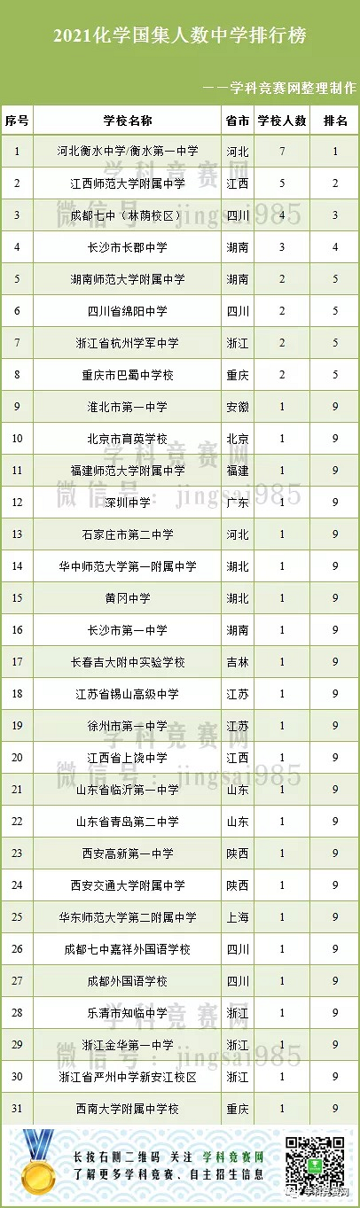 化学竞赛的国集名单正式出来了,不出意外,重庆3人