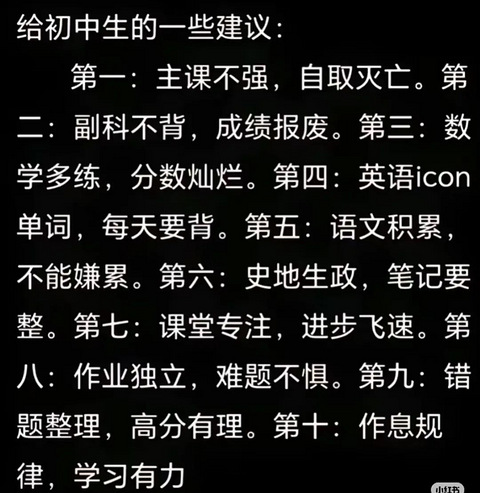 不是搞竞赛,也不是搞思维。 更不是到处花钱找名师。 以目前三年难度不变的中考来说: 背才是最重要的。 能不能搞竞赛,家长自己心里雪亮雪亮。 千万千万不要勉强,也不要强撑。 你以为奋力一搏,清华我有。 其实更大可能是灰头土脸,重高危险。 再记住一句话: 高考拼理科,中考拼文科。