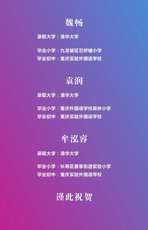我正在参加1月学校龙门阵,你也一起来吧https://go.cqmmgo.com/forum-462534-thread-47021609739669039-1-1.html 又来一外的升学喜报3名学生保送清华大学
