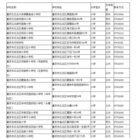 江北区义务教育学校名单和联系方式,从小学到中学全都有 重庆市江北区小学 名单和联系方式
