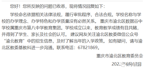 渝北数据谷中学是八中吗?数据谷中学会不会改名字?