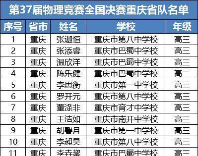 第37届全国中学生物竞决赛前50名及金牌名单出炉