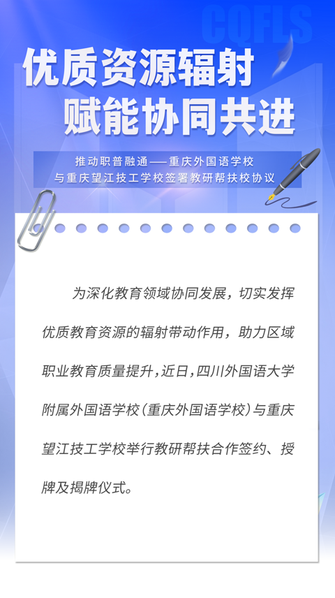 重庆外国语学校与重庆望江技工学校签署教研帮扶校协议