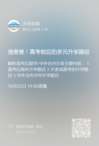当一部分家庭还在独木桥前焦虑徘徊时,另一部分家庭已经凭借更广阔的信息和视野,为孩子规划了多条进可攻、退可守的升学通道。 高考,从来不是唯一答案,它只是众多选项中的一个。高考成绩不仅可以报考国内大学,也是通往众多世界名校的另一张门票!真正决定孩子未来宽度的,是家长今天的认知与规划。升学找我特邀规划老师分享“多元升学路径”,为您系统拆解高考内外那些被很多家庭忽略的优质升学路径。 直播时间:10月22日