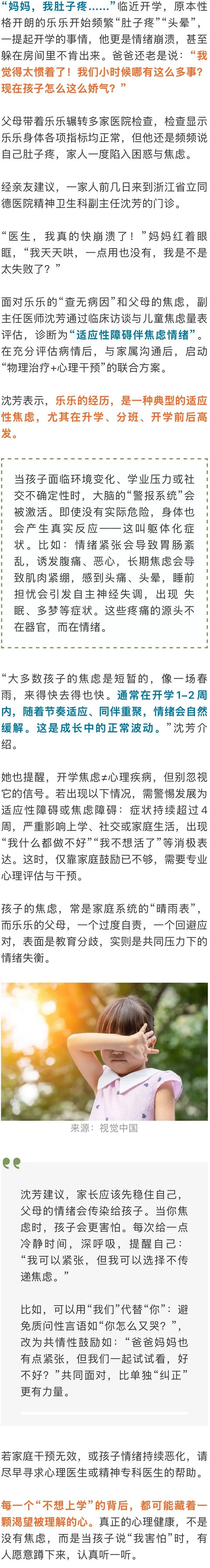 一开学孩子就喊肚子疼、头晕,家长觉得是矫情