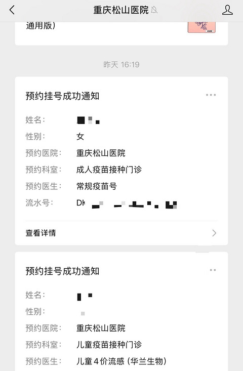 最近流感凶猛,听说因为甲流,班上生病的娃儿多,幼儿园这种重灾区,停课的不在少数。周末抓紧给老人和娃把流感疫苗安排上了,我去的松山医院,疫苗98服务费20。松山医院好的是周六周日都能打,我下午5点钟去的,也不排队。记得提前在公众号上挂个号,挂号免费的。绑定了医保卡的,疫苗可以走医保付费,服务费单独支付。打完观察半个小时再走。需要注意的是,正在感冒的,血压太高的不能打,打完疫苗当天不能洗澡。 这不,