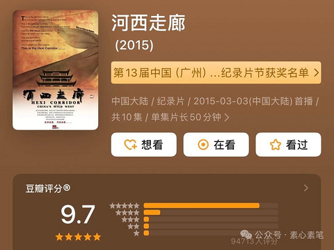 纪录片是连接书本知识与真实世界的桥梁。让孩子多看纪录片,能拓宽认知边界,培养多元能力,比单纯看动画片和短视频更具有教育价值。家长收藏好,周末和寒暑假带孩子看起来,涨知识。1、河西走廊该片以位于中国西部的重要通道,丝绸之路的黄金段——河西走廊为讲述对象。从政治、军事、经济、文化、宗教等多角度呈现了从汉代开始直至今天,河西走廊及其连接的中国西部的历史,以及它对中国历史和文明进程中所发挥的独特作用。