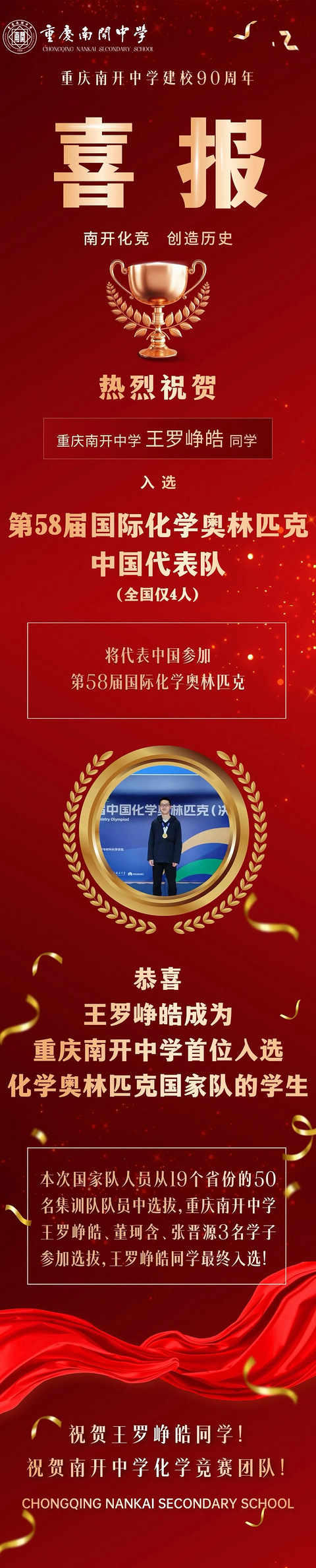 全国仅4人!南开学子王罗峥皓入选国际化学奥林匹克中国代表队