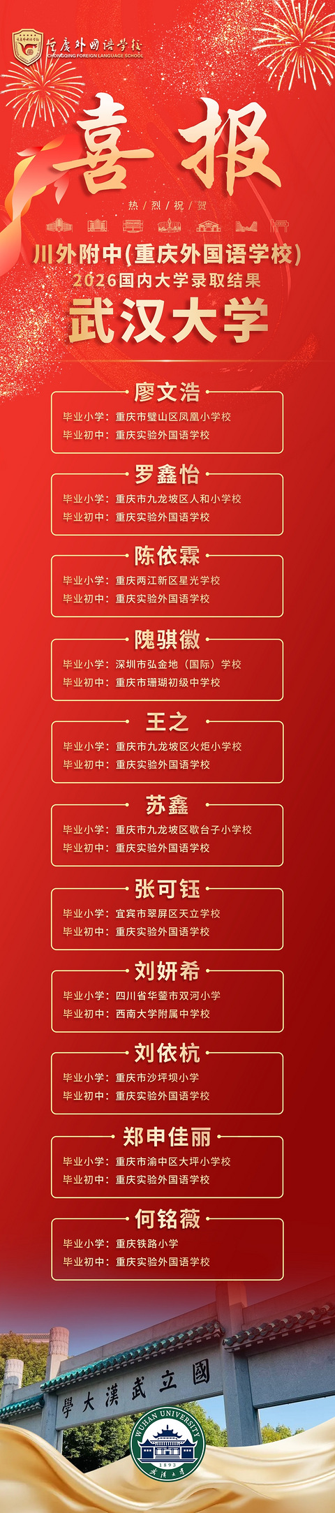 重庆外国语学校2026升学喜报:11名学生保送武汉大学!