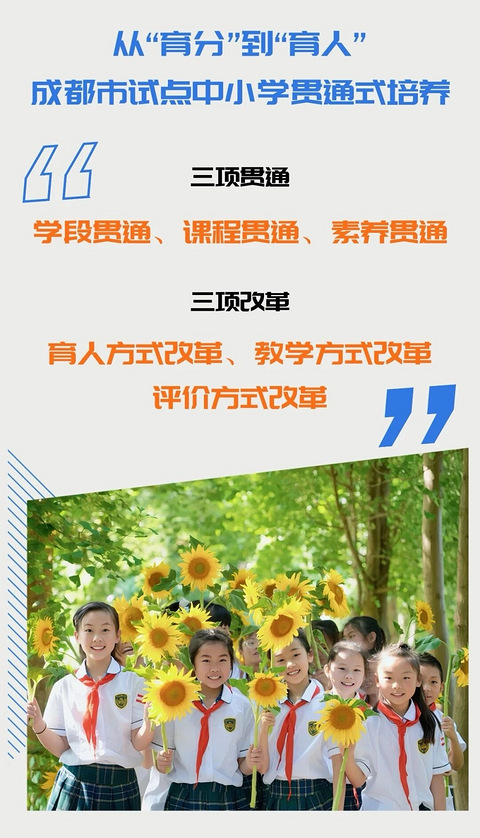 最近,四川成都,迎来多所“小初高”十二年贯通式学校和“初高”六年贯通式学校。当地教育局官网相关政策解读显示,贯通式培养是有序推进中考改革的尝试。成都市自2025年起,探索开展相关贯通式培养改革试点。 据了解,所谓贯通式培养试点是不调整现行学制,在国家规定学制、课程和教材基础上,探索小学、初中、高中十二年一贯制或初高中六年一贯制人才培养模式,打破学段壁垒,实现课程体系、教学资源、师资力量等方面的有效