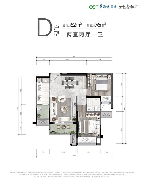 华侨城最后一期高层组团"云溪都会",套内62-111㎡,总价约119万起