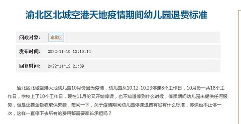 大家关注的幼儿园疫情停课怎么退费问题 来自重庆市教委的回复:伙食费、延时保育费据实结算,疫情期间全额退还