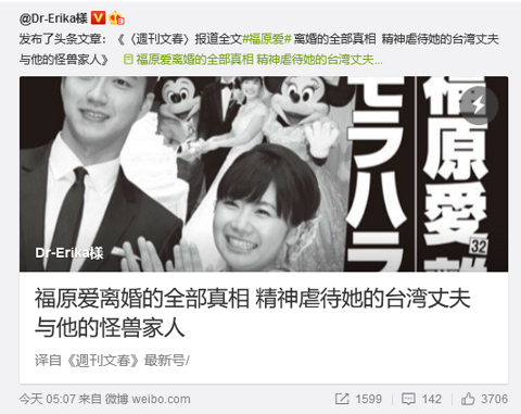 福原爱离婚的全部真相,精神虐待她的台湾丈夫与他的怪兽家人