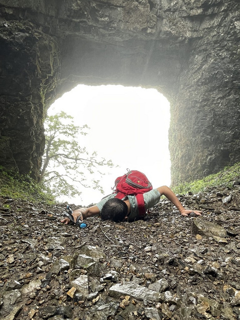 爬山纯爱战士雨中柏枝山享受泥浴