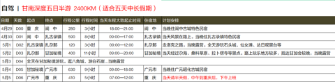 我是单车单人,车上可以再坐两个人,留点空间放装备。今儿发个路线出来,看看有没有一起的。如果约得起人,那就出发。我准备采用露营+民宿的方式。因为我猜想如果能在甘加秘境露营,一定很巴适。 备注下:表格里面的行程时间是我估算的,包括了在路上玩耍的时间