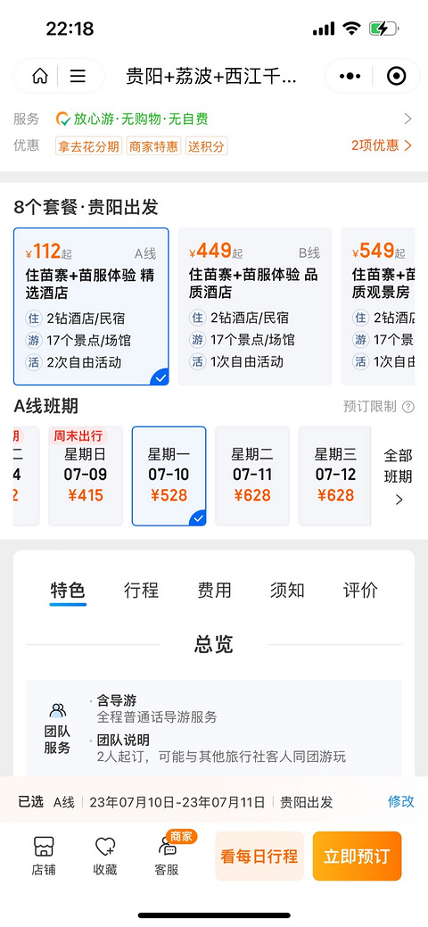 定了行程7.10-7.11的贵阳小七孔+千户苗寨的团,但是因为临时有事去不了,客服说如果找到2人替换一下就可以,我们人多和客服讲价比在携程后台定要便宜很多,如果有驴友想拼个团,请联系我。