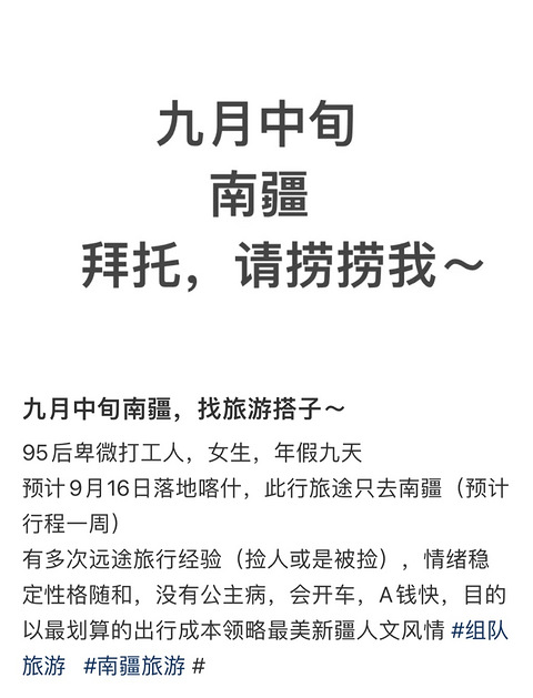 最好是体力好胆子大的女生,实在不行男生也可以了。我们可以打车去,费用AA就行。最近几天就想去,大数据请把我推荐给热爱户外的小伙伴。