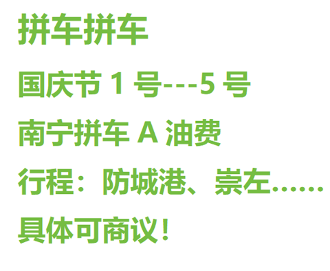 拼车拼车 国庆节1号---5号 南宁拼车A油费